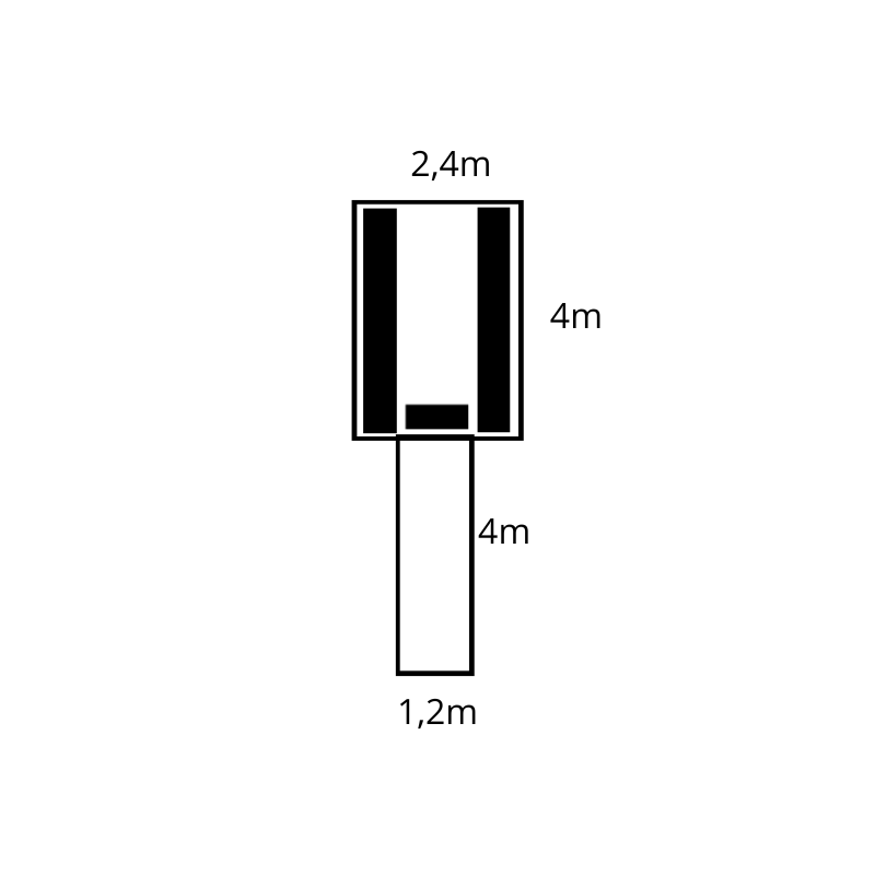 Oleskeluosan koko 2,4 x 4 metriä